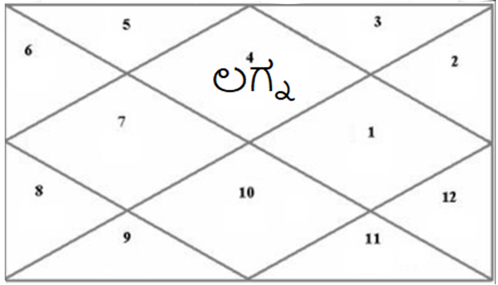 ಉತ್ತರ ಭಾರತೀಯ ಶೈಲಿಯ ಜಾತಕ ಅಥವಾ ಕುಂಡಲಿಯಲ್ಲಿ ಕರ್ಕಾಟಕ ಲಗ್ನದ ಜಾತಕ ಈ ರೀತಿಯಾಗಿ ಕಾಣುತ್ತದೆ.
